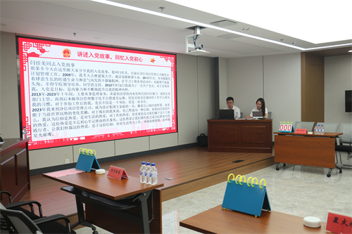活动中,首先由7月份过政治生日的徐晓丹、闫佳美、田雨石三名党员同志,与大家分享了各自的入党故事。贺国峰、许伟、曹振峰为三位同志颁发了政治生日贺卡。“讲述入党故事”使每位党员从讲述故事的同志身上汲取到奋进力量,激发了全体党员践行入党誓词的信心和决心,坚定了理想信念,身体力行的去树立起一面面引领他人的旗帜。
