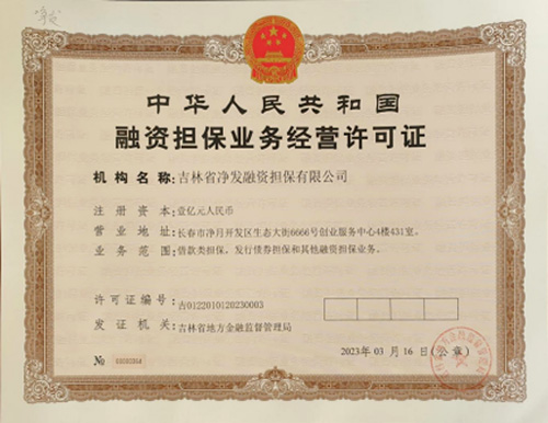 吉林省beats365亚洲版官网融资担保有限公司融资担保业务经营许可证
